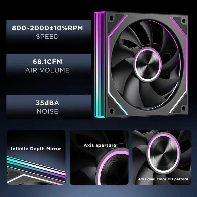 [ARGB Synchronized Lights]Siamese ARGB Infinity Mirror fans and dual-ring ARGB water-cooling headers are synchronized with the 5V 3pin on the motherboard, and 1600W colorful soft-lighting effects create cool visual effects. Transparent shell + dual halo surround, enhance the chassis value, realize the whole machine lighting effect unity