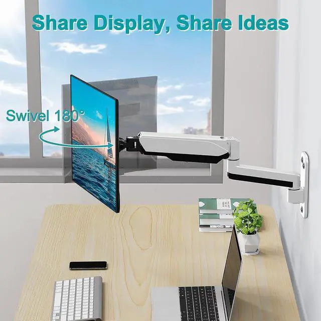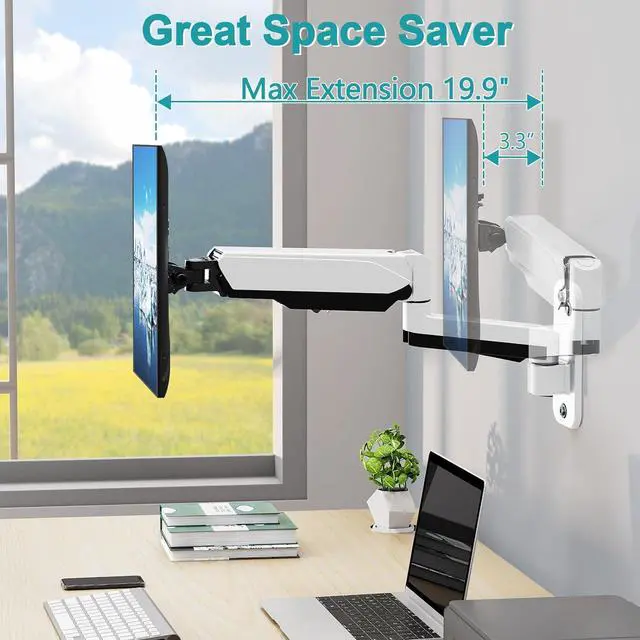 Most Advanced Gas Spring System - This Gas Spring Arm Wall Mount Stand is built for thousands of movement by passing 10000-cycle tests, which achieve flexibility and stability than traditional mechanical spring. It can be adjusted to the weight of your monitor creating a suspended free-float effect. Please adjust it according to your monitor weight before use.