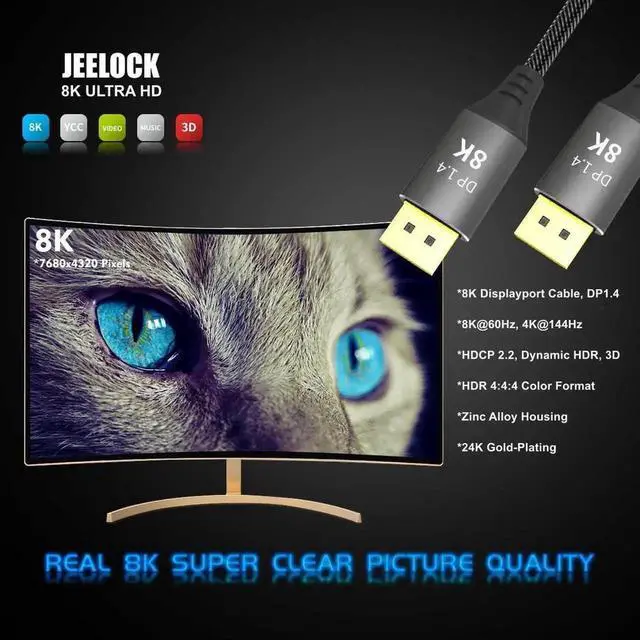 The BUSOHE DisplayPort 1.4 cable can transfer data up to 32.4 Gbps, 50% increase over DisplayPort 1.2 cables. BUSOHE DisplayPort to DisplayPort cable can support UHD resolution up to 8K (7680x4320) at 60Hz refresh rate. What's more, DisplayPort 1.4 cable can deliver high dynamic range (HDR) video and support stereoscopic 3D video, multi-stream transport (MST) and high-bandwidth digital content protection(HDCP 2.2 ).