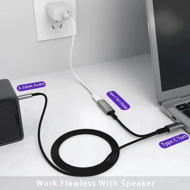 HiFi Sound:This usb c aux cable has a built-in smart DAC chip which supports up to 24Bit 96Khz,you can get the clear sound from it.