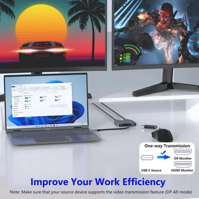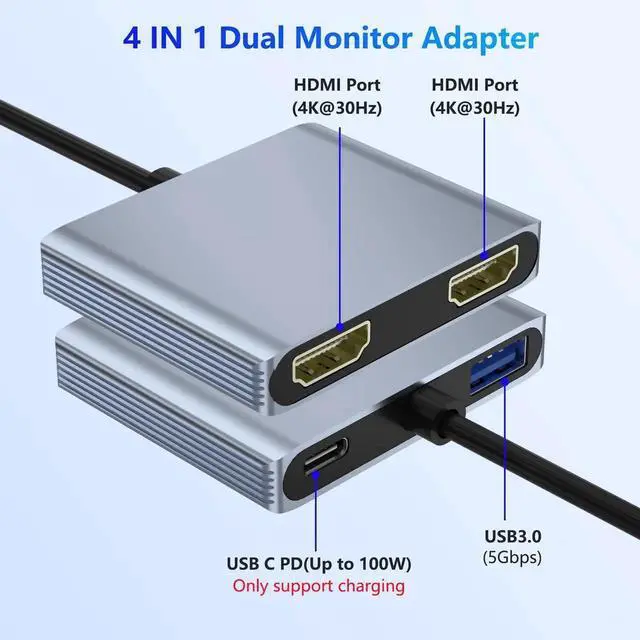 Additional Features- [USB 3.0+PD Fast Charging]USB C docking station dual monitor features a USB 3.0 port, boasting blazing-fast transfer speeds of up to 5Gbps. Compatible with USB memory, mouse, keyboards, SD card readers, external HDDs, game controllers, and more. Additionally, a Dual HDMI adapter for 2 monitors provides high-speed pass-through charging up to 100W. High-speed charging and safe, save your charging time, and enjoy more gaming fun.