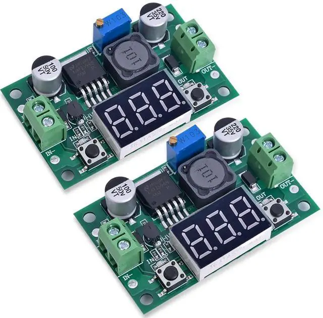 2pcs LM2596 Adjustable DC-DC Step-Down Buck Converter Module with LED Voltmeter Display, 4.0-40V Input to 1.25-37V Output