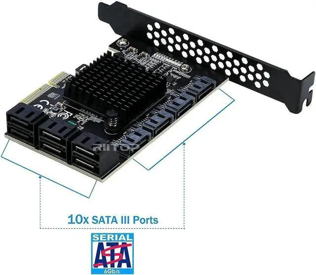 PCIe SATA Card allows you add Extra 10x SATA 3.0 Ports via PCI-e x4/x8/x16 slot to your mainboard, No drivers need. Easy to install, Plug and play
