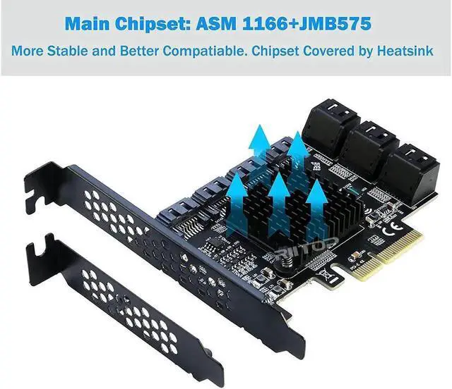 [Chipset and Speed] - PCIe to SATA Adapter adopts AMS1166+JMB575 Master Chipset, more stable and compatible, PCI-e x4 Gen3 transmission. Supports SATA transfer rate up to SATA III (6Gbps), backward compatible with SATA II (3Gbps), SATA I ( 1.5G bps)
