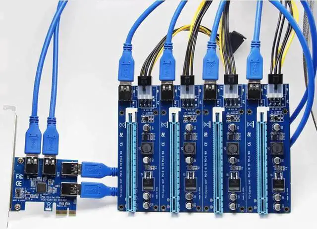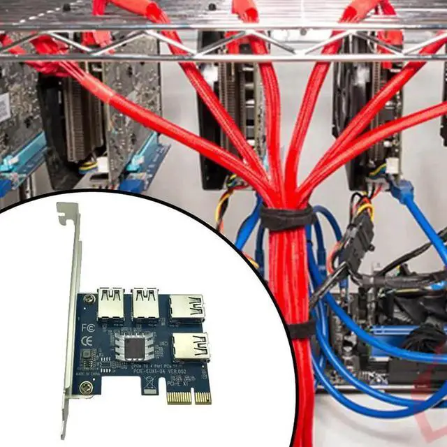 60cm USB 3.0 PCIe Riser Card PCI-E Express 1x to 4 Port PCI-E 16x Extender Adapter SATA 15Pin-6Pin Power Cable for BTC Mining