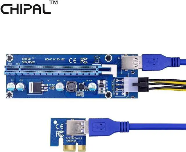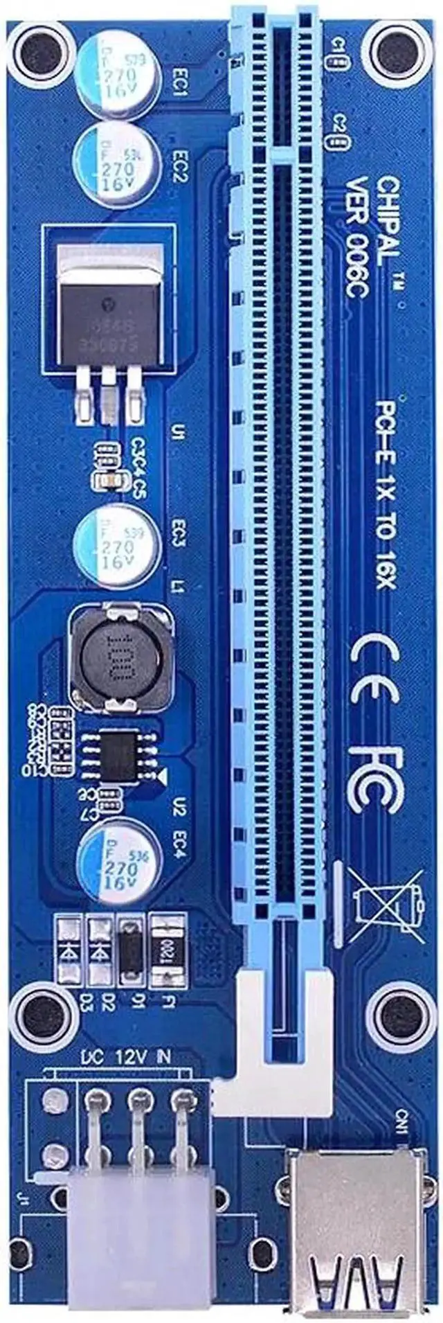 10PCS VER006C 0.6M PCIE PCI-E 1X to 16X Riser Card Extender with USB 3.0 Cable / 6Pin Power Cable for BTC LTC ETH Mining