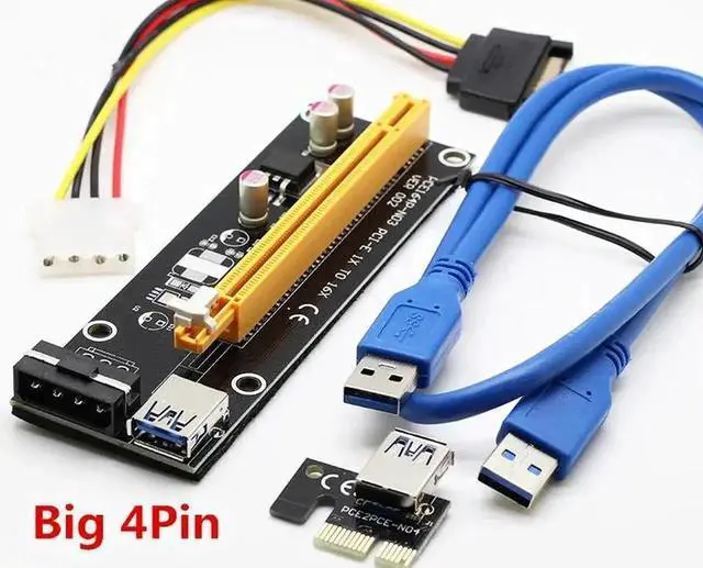 5PCS Super Stable 60cm Big 4P PCI-E PCI E Express 1x to 16x Graphics Card Riser Extender Adapter VER006 For BTC LTC ETH Miner