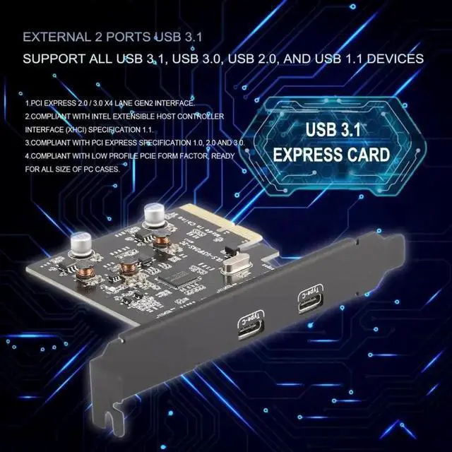 2 Type C Ports USB 3.1 (10Gbps) PCI-E PCI Express Card Expansion Card Host Card Hub Controller Adapter ULS-U31P2AS-2C