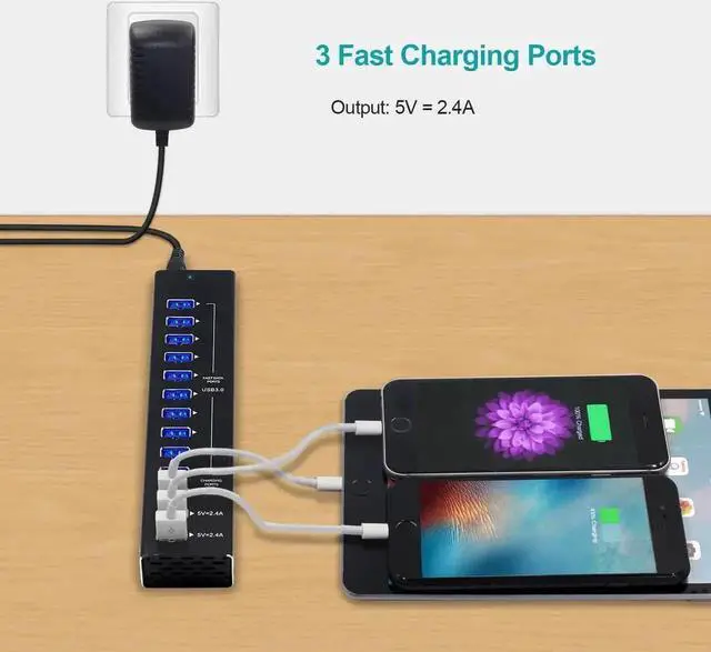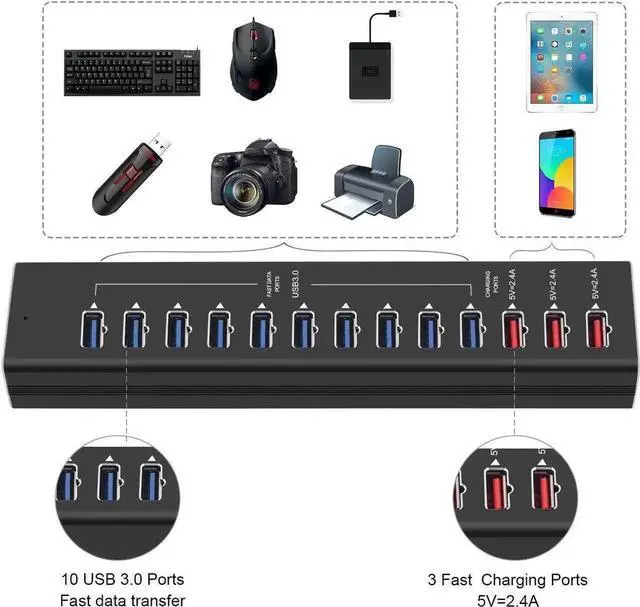 USB Hub Charger 13 Ports USB 3.0 / USB C Hub 12 Ports Multi Splitter 5V 2.4A Fast Charger EU/US Power Adapter for Macbook Pro PC