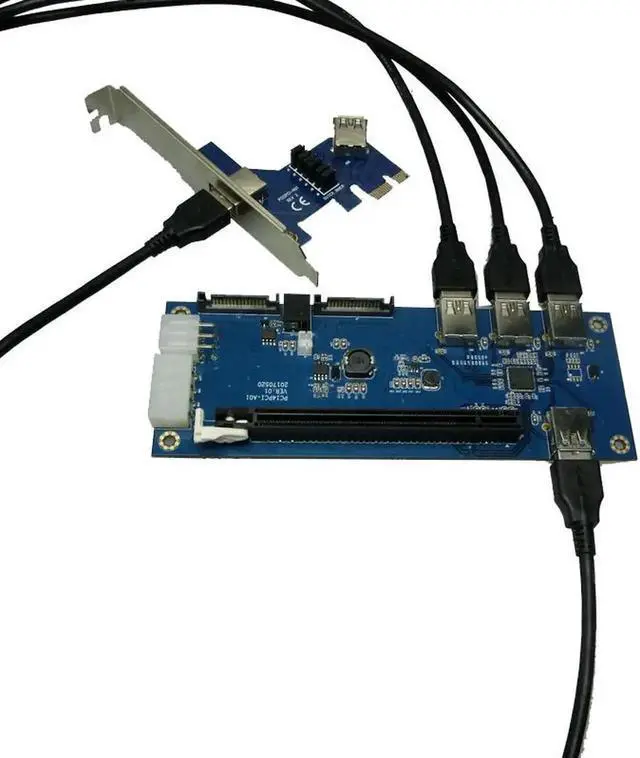 PCI-E 1X Expansion Kit 1 to 4 Ports Switch PCIe x16 slots Multiplier Hub Riser Card USB 3.0