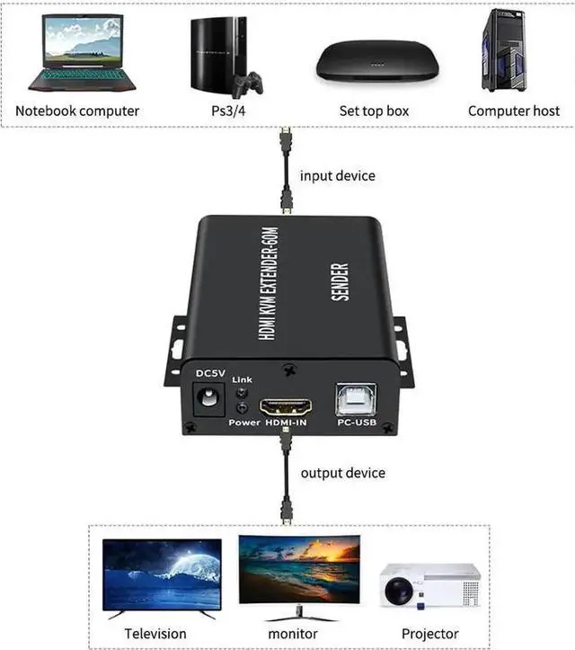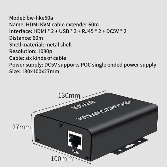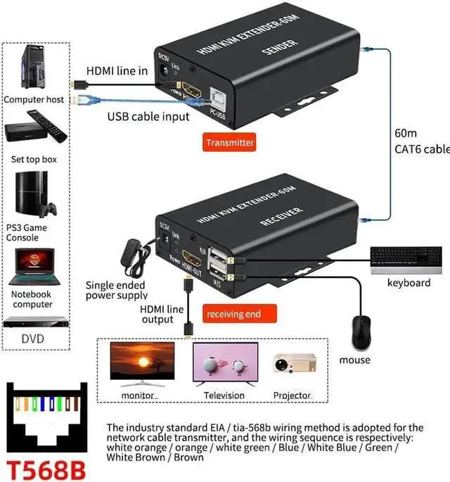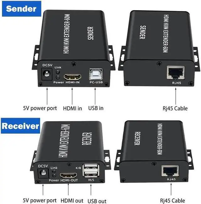 HDMI KVM Extender 60M over Cat5/6 Ethernet Cable HD 1080P HDMI USB KVM Extender Audio Video Sync Transmit Support Keyboard Mouse