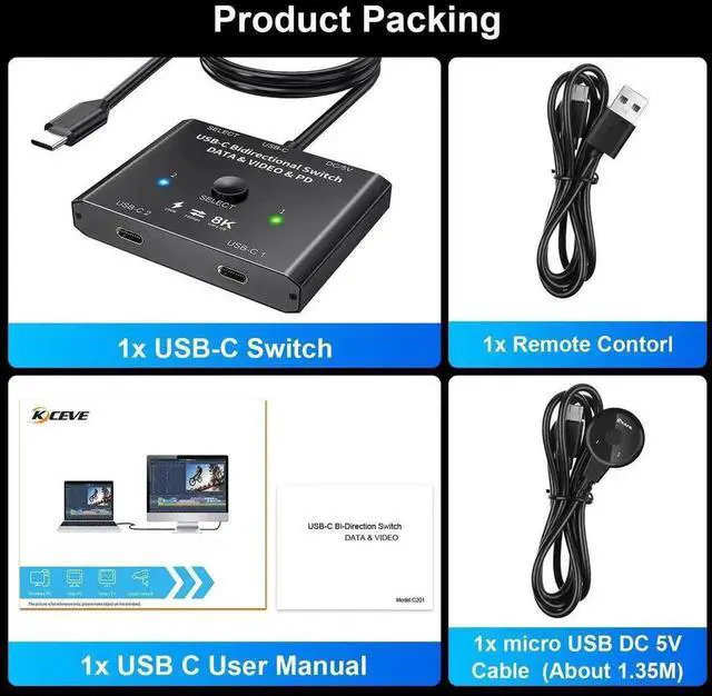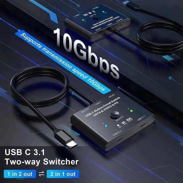 8K USB C Bi-Direction Switch 1x2/2x1 Data Video Switcher USB 3.1 PD 100W Splitter For Computer Monitor Multiple Source KVM