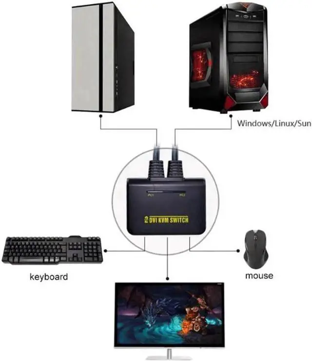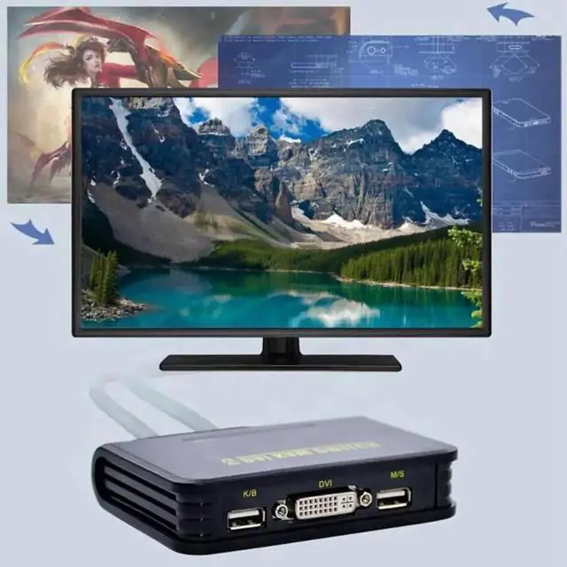 2 Port USB2 0 DVI KVM Switcher Switch Box 2 in 1 Audio Video Cable Keyboard Mouse HD Monitor KVM Switch