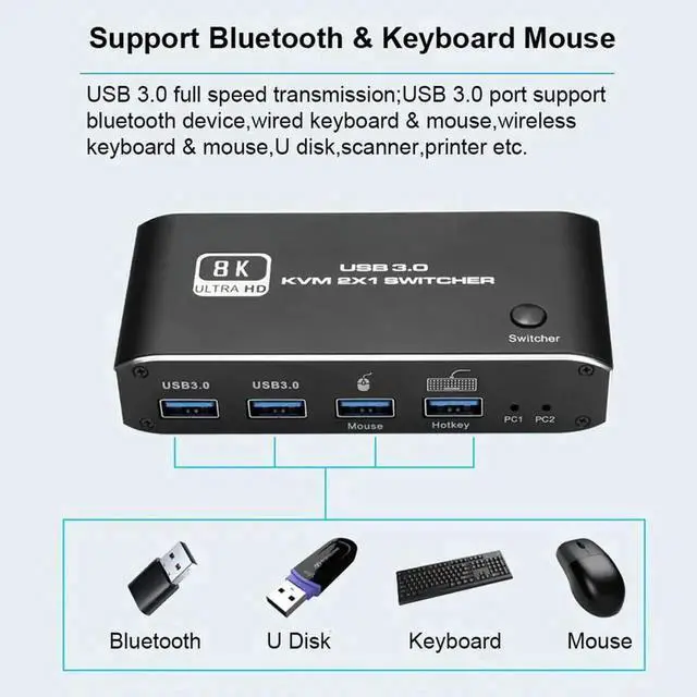 • 4K 120Hz HDMI USB 3.0 KVM Switch HDMI 2.1 KVM Switch USB 8K 60Hz 1080@240Hz USB KVM Switcher HDMI with USB 3.0 Port PC