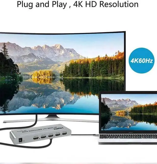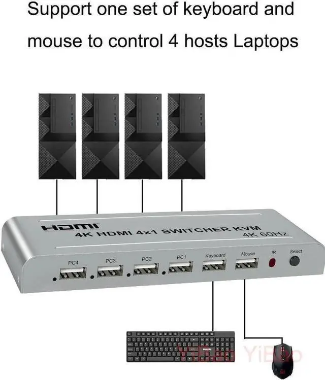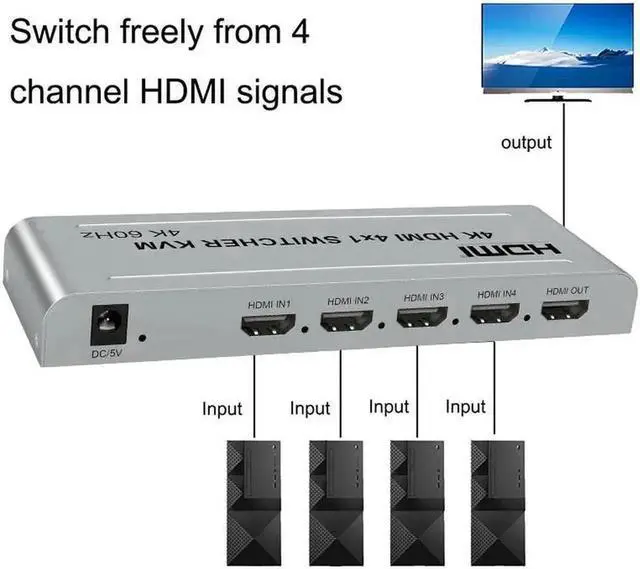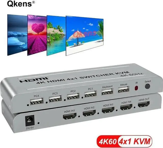 4K 60hz 4x1 HDMI KVM Switcher 4 In 1 Out Audio Video Converter USB Keyboard Mouse Control 4 Laptop PC, Computer To TV Projector