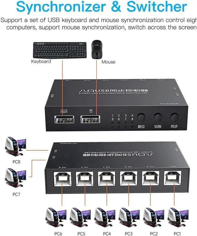 6 Ports USB KVM Switch USB Synchronizer KVM Switcher for Windows10 PC Keyboard Mouse Printer Synchronization Controller