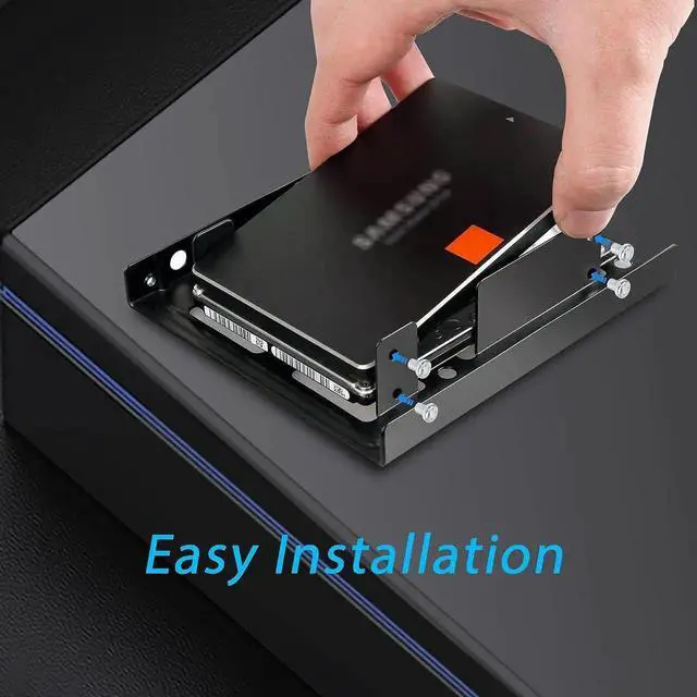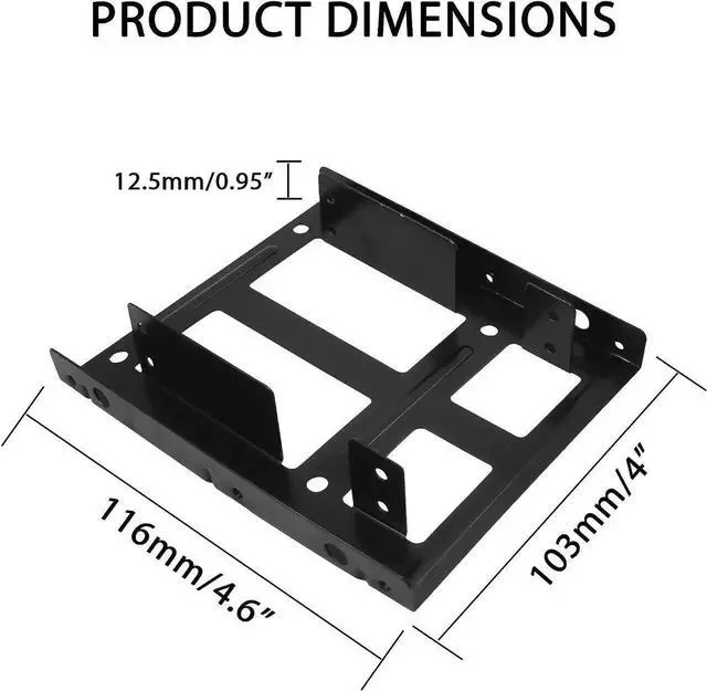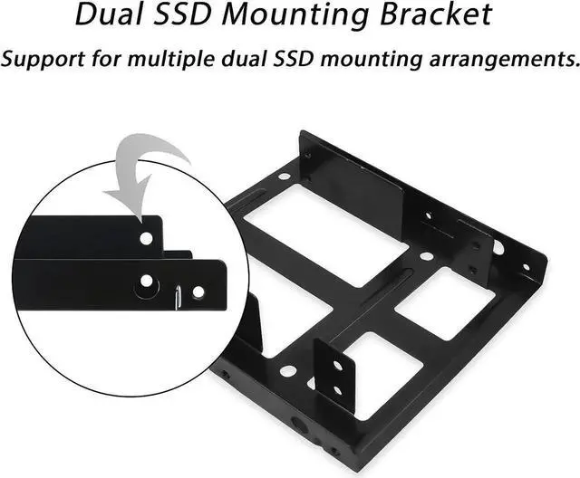 Dual SSD Mounting Bracket For use in 2.5 to 3.5 mounting bracket kit compatible with all types of 2.5 inch hard drives (HDD/SSD) and fits all popular PC casings. HardDrive001Enlarge Space Can convert 2.5 inch hard drive to a 3.5 -inch drive bay via this holder for use with up to two 2.5 SSDs quickly maximize and expand space within your computer case. HardDrive001Quality Selection SSD bracket 2.5 to 3.5 made of durable metal alloy can help heat dissipation and would not easily get out of shape protecting your hard disk effectively. HardDrive001Drive Height Range Supports 7mm and 9.5 mm height standard SSDs.