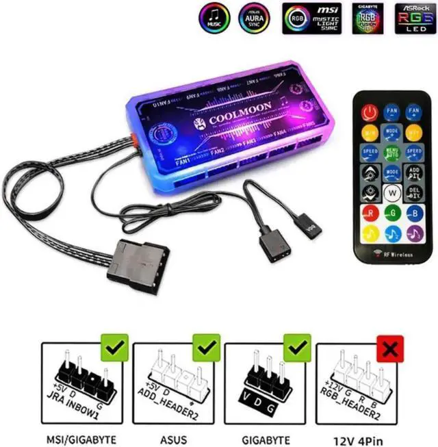 D7YC COOLMOON RGB Fan Music Controller PC Cooling Chassis Silent Fan Hub for Connecting/Sync to Motherboard