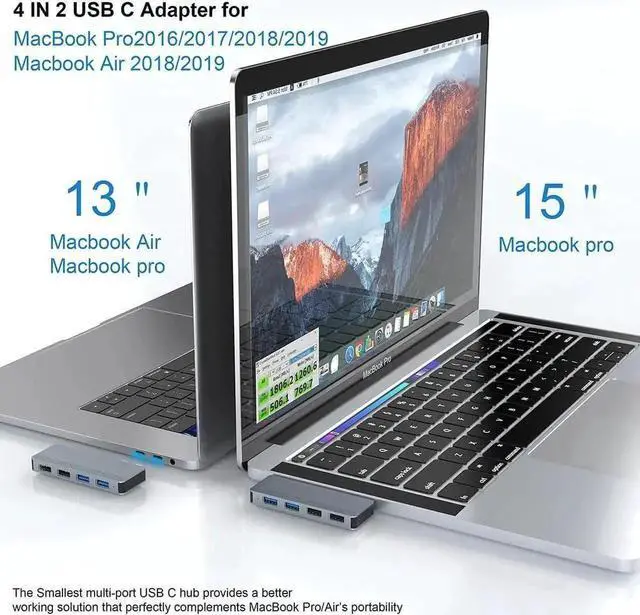 Super speed data transfer: USB C 3.0 adapter for MacBook Pro with 2 x super speed USB 3.0 ports allows you to transfer data at 5 Gbps and saves time. And with 2 x USB 2.0 k, you can connect a keyboard, mouse or hard drive to the MacBook.