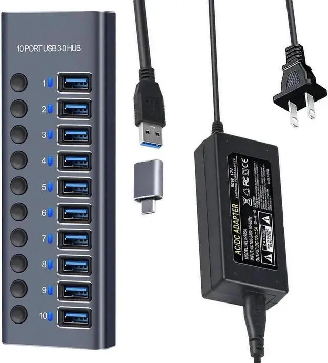 ![Alt view image 5 of 7 - WISDUM Powered USB Hub 3.0, 10-Port USB 3.0 Hub [Durable Aluminum] 10 Data Transfer Ports with Individual On/Off Switches, USB Hub 3.0 Powered with Power Adapter for Laptop PC](https://c1.neweggimages.com/productimage/nb640/C2AGS2601240JV3WH13.jpg)