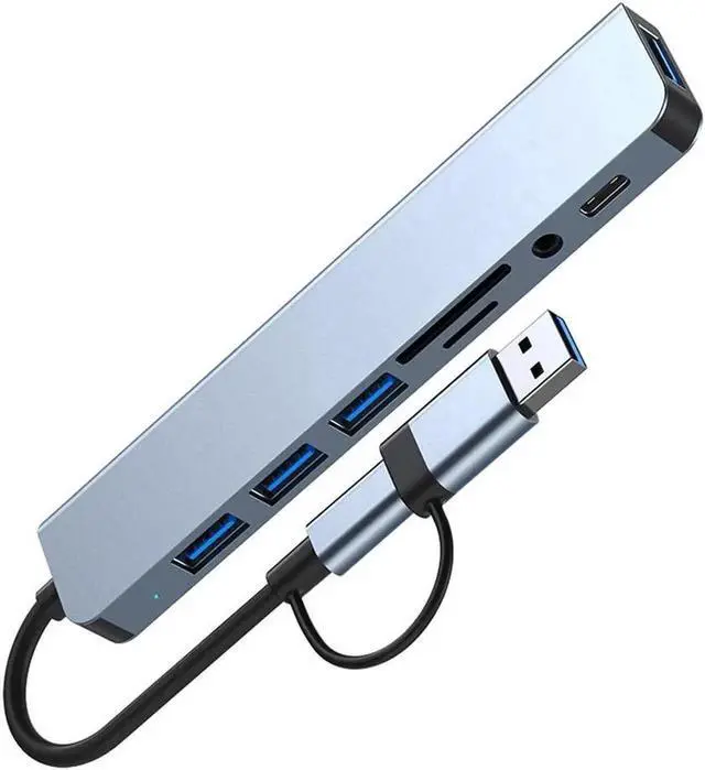 8-in-1 USB Hub: This usb port hub extender can instantly expands your USB-C or USB female port into 7 essential ports, including USB jacks, SD/TF card slots, 3.5mm audio and USB-C port. A helpful gadget that let you connects various peripherals for increasing productivity and convenience.