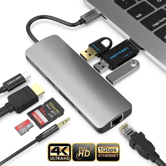 USB C Hub, 9 in 1 USB Type C Adapter with Ethernet, 4K USB C to HDMI, 3 USB 3.0 Ports, SD/TF Card Reader, 3.5 mm Audio Jack, PD Fast Charging for Mac Book Pro and Other Type-C Laptops