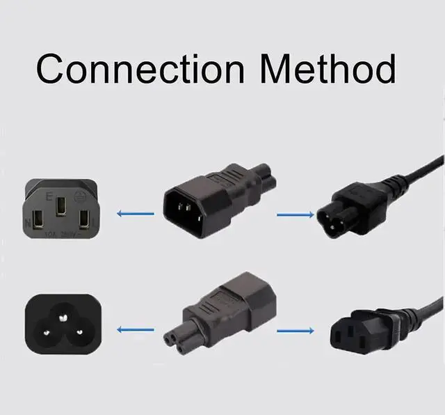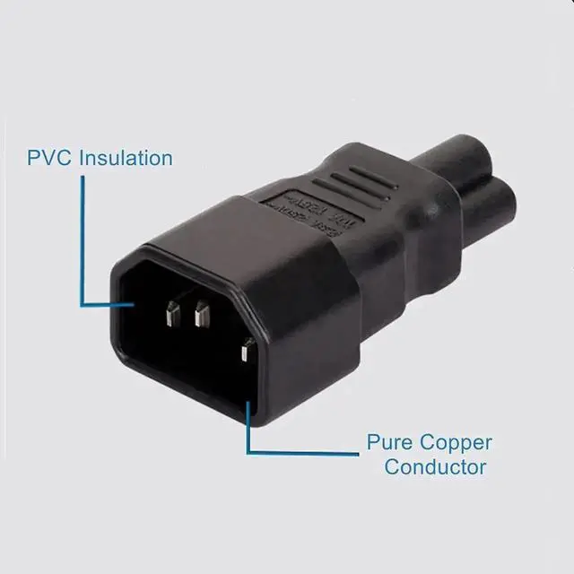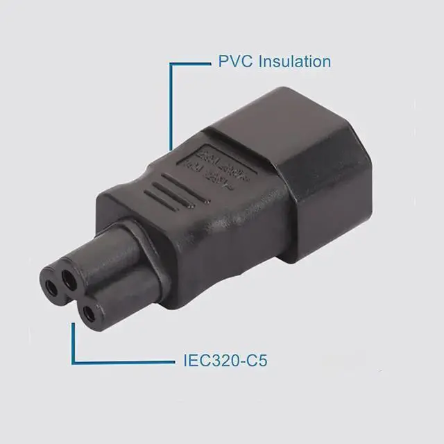C14 to C7 AC adapter current: 2.5A, voltage: 110-250V, application: TV or other C14/C5 devices.
