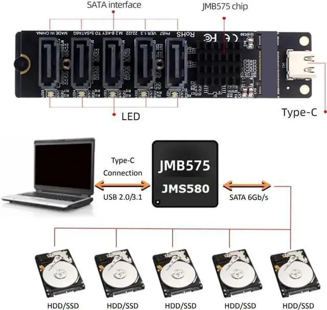 4) Support 5 port SATA 6Gbps interface; Supports BIST and loopback mode;