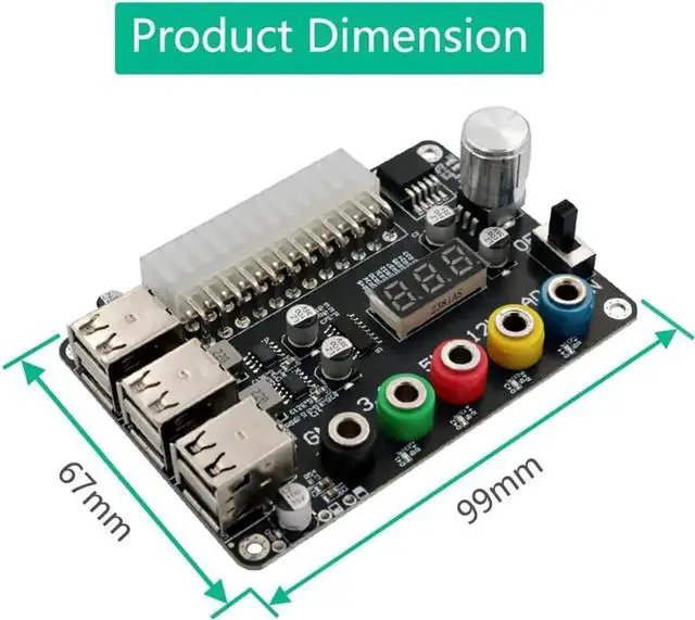 Upgraded ATX Power Board: with 5V and 12V output voltage, 3 digit LED displays 12V voltage output at real time, supports QC 2.0 /QC 3.0.