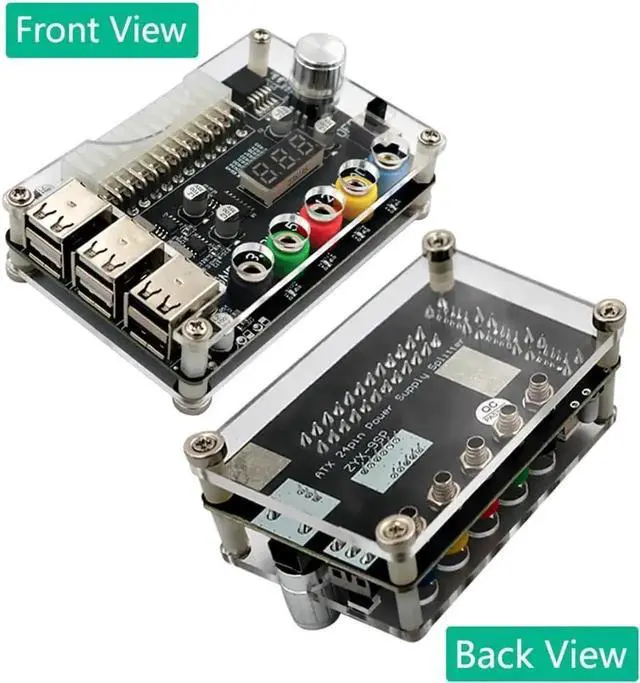 The voltage output terminals of the ATX power expansion board correspond to each screw terminal. At the same time, the panel is also equipped with an acrylic case kit for easy to use.