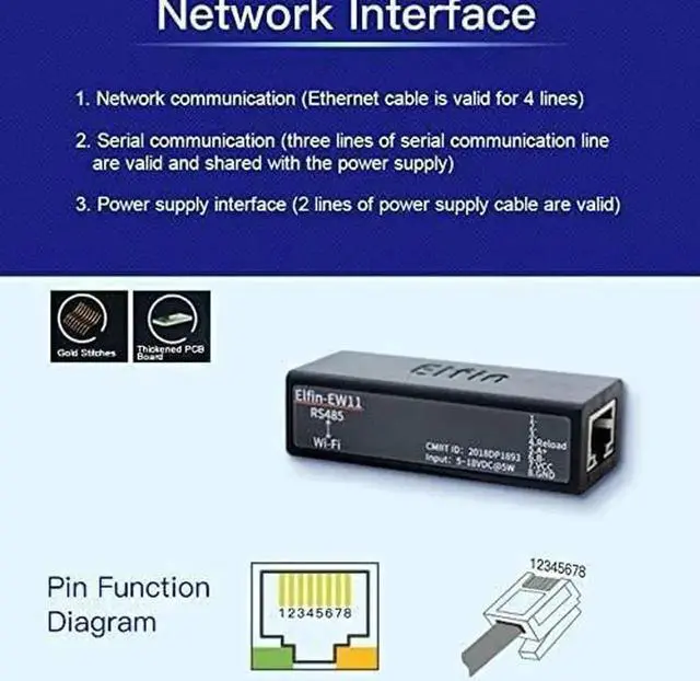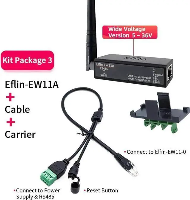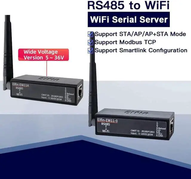 The Elfin-EW11A(-0) series support RS485 to WiFi, Elfin-EW11 unit is a complete solution for serial port device connecting to network. This powerful device supports a reliable and proven operating system stored in flash memory, an embedded web server, a full TCP/IP protocol stack, and standards-based (AES) encryption.