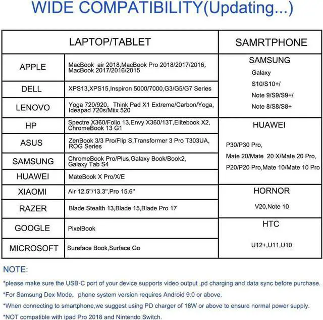 USB Charger Features: - Compact size and lightweight, easy to take the type-c USB hub with you anywhere. - Multi-function USB Type C hub, suitable for simultaneous transmission and power charging. - USB 3.0 interface can connect hard disk, mouse, keyboard and so on. - Allow you to connect keyboard, mouse, thumb drive to your laptop; Provide high-speed transfer rate of up to 5Gbps. (For a stable connection, connected devices should not exceed a comned current of 900mA. )
