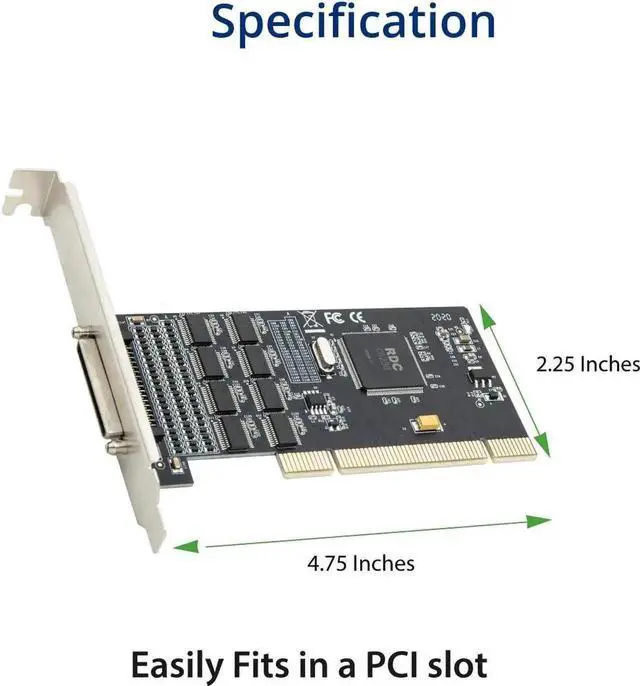 PCI Bus: PCI 32-bit 33Mhz bus interface. Compliant with PCI specification version 2.1. Support to change the serial port number
