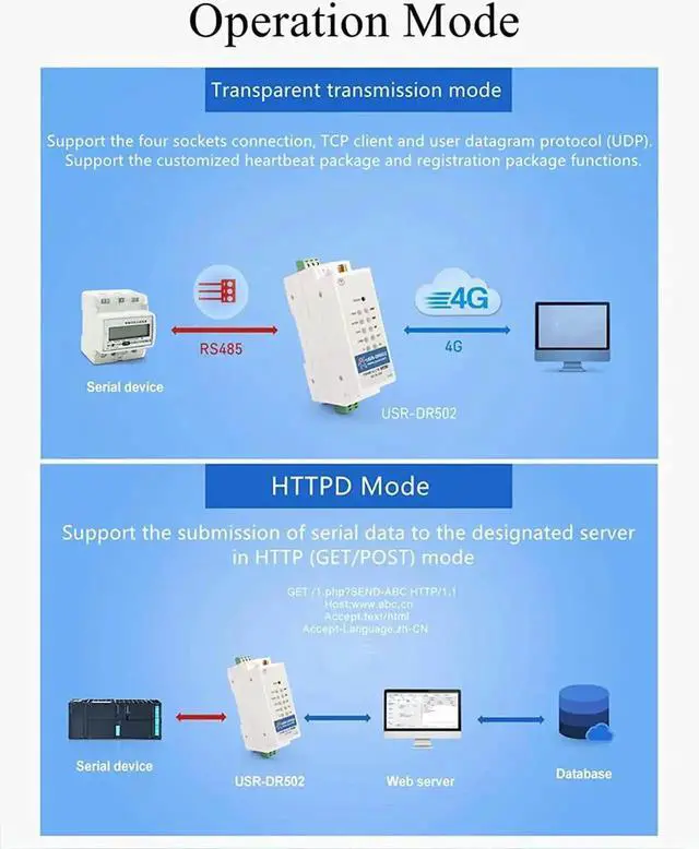 Basic Functions. Support the RS485 serial port, and easily deliver the data transparently between RS485 and 4G LTE Cat 1 network in bi-direction.