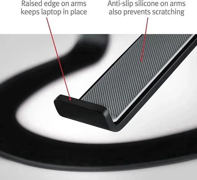 Protection - Anti-slip silicone pads and bent arms keep laptop in place and prevent scratches