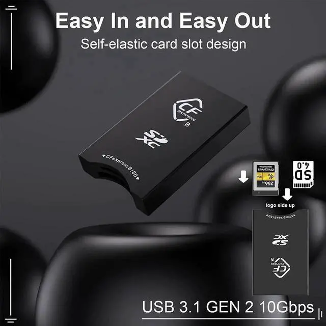 10Gbps CFexpress Card Reader & LED indicatorUSB 3.2 Gen 2 CF express cards type b reader transfers your data at lightning speed - up to 1.25GB /s (10Gb/s). Transfer your masterpieces to your laptop in just a few seconds, CF express cards type b reader no need to wait for a long time. The USB 3.2 cfexpress is backward compatible USB 3.1 Gen 1 and USB 3.0. You can easily monitor the connection status through the LED indicator of this CFexpress card reader.
