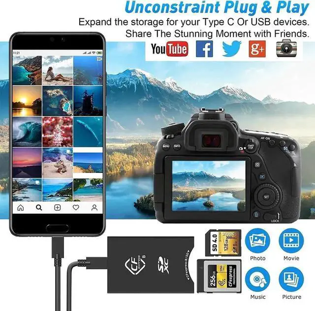 CFexpress Reader & USB A to USB C/USB C to USB C CableProfessional CF express cards type a /type b and SD Card Reader comes with USB A to USB C cable and USB C to USB C cable, which is compatible with almost all USB C and USB A devices.