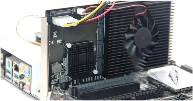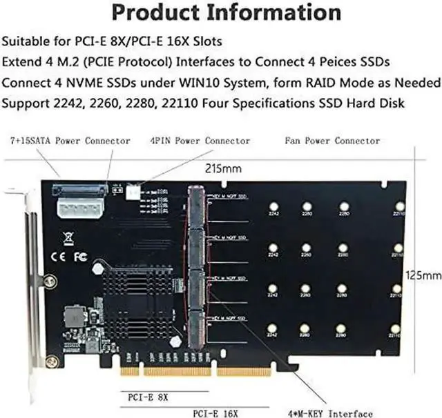 The LM313 is a PCI-E adapter that can be used to transfer 4*M. 2 (PCIe protocol) interfaces through the host's PCI-E X16 slot. 4*M. 2 interfaces can be plugged into 4 pieces M. 2 NVMe SSD. In Windows 10, 4 peices M. 2 NVMe SSDs can be combined into a RAID mode through third-party software.