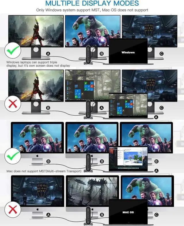 Note: MacOS DOES NOT support MST mode, all 3 display peripherals will mirror the desktop interface