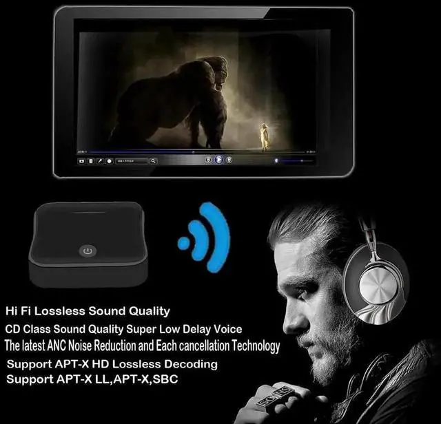 2) Real-time audio transmission: The transceiver uses the aptX low-delay technology in both modes, which can reduce the audio delay below 40 ms. This allows you to enjoy high-quality audio in sync with the video (Note: your headphones or speakers must also support aptX LL / aptX. )