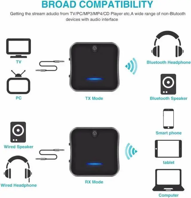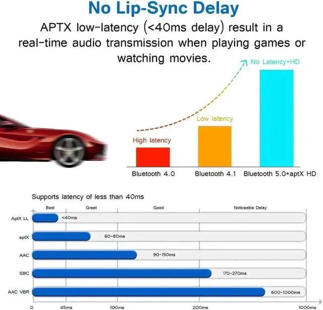 Real-Time Audio Transmission: Bluetooth transceiver adopt the aptX Low Latency Technology in both TX & RX modes, which can reduce audio lag under 40ms and let you enjoy high-quality audio in sync with the picture (Your Bluetooth headphones or speaker must also support aptX LL / aptX as well. )