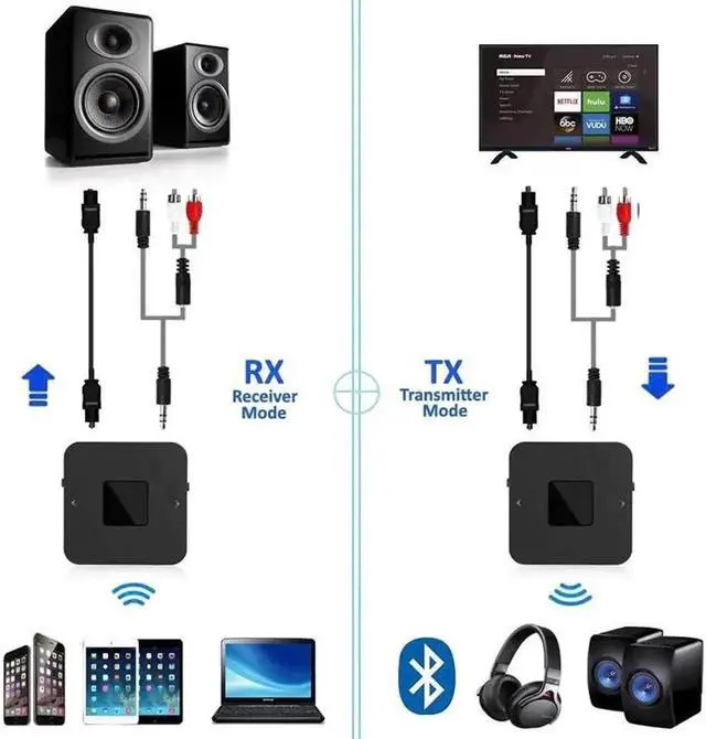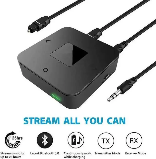 Wireless Bluetooth Eeverywhere - Turn any media device into a Bluetooth 5.0 receiver/transmitter, 2-in-1. Experience pure enjoyment with no restraints. Enable your digital TVs, PCs and other music/audio players to transfer signal to your Bluetooth headphones. You can enjoy your Football Live or Movie with out disturbing others.