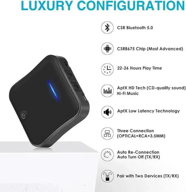 RX Mode: Powered by premium chipset, VIKEFON Bluetooth adapter supports the latest Bluetooth V 5.0, whereas most of others on are only equipped with CSR8670 chip and support Bluetooth V 4.1, V 4.0 or even V 3.0. With aptX HD, our Bluetooth transmitter / receiver can stream stable audio and deliver CD-quality sound wirelessly over Bluetooth connections.