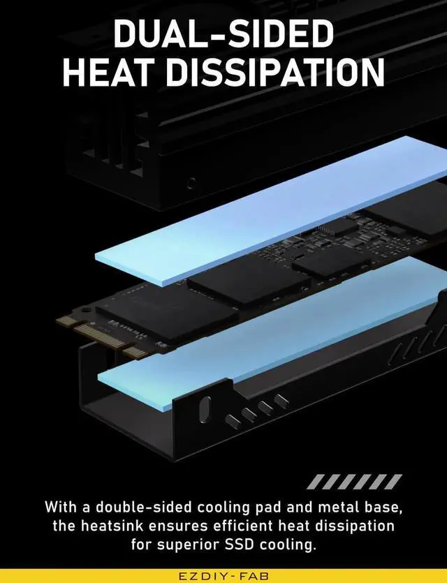 Dual-Sided Thermal Pads and Metal Base: Optimizes heat dissipation, lowering SSD temperatures by 5°C to 30°C, preventing overheating without slowing performance.