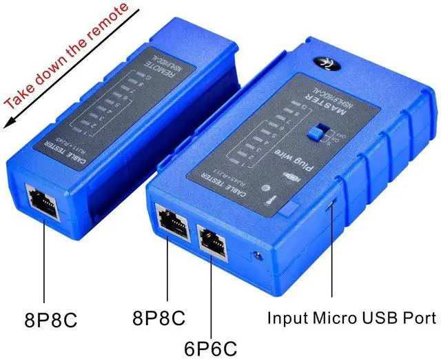 This cable tester can not test any electrified product.9V reduplicated battery or AAA battery is used in this tester.Battery is advised to change if any weak light appears. Test can not be done while RJ45 copper screezers are not pressed pressed.Any disobeys may lead to a permanent damage of the end.Please use quality tools to press the cables.Any end not by by 6P6C can not test telephone cables.Any disobeys may also lead to a permanent damage of the end.