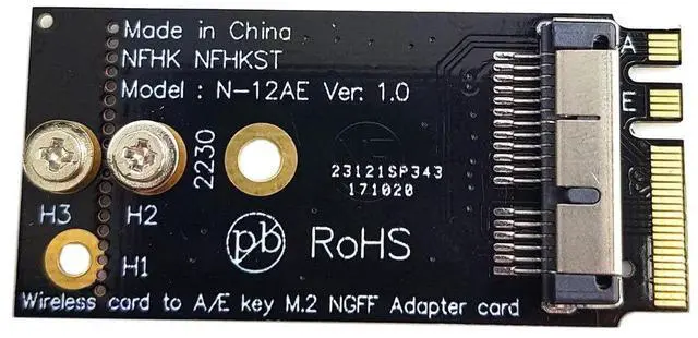 This adapter can convert BCM94360CS2/BCM943224PCIEBT2 card to NGFF(M.2) Key A/E interface for Mac OS and Hackintosh.