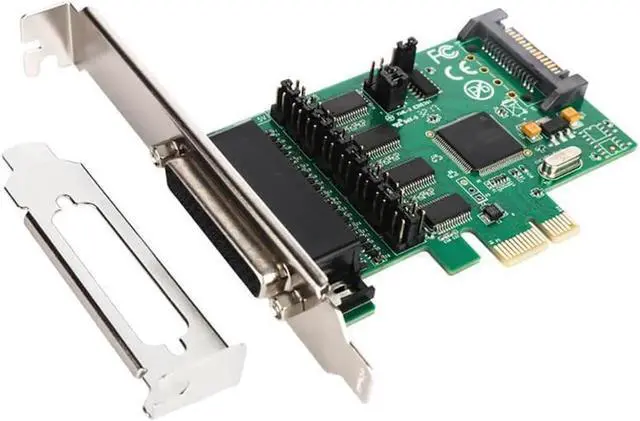 Features Chipset: WCH384L Compliant with PCI Express Base Specification 1.1. Supports x1, x2, x4, x8, x16 (lane) PCI Express Bus connector keys. Support 4 x UART serial ports Built-in 16C950 compatible UART 128-bype deep transmit/receive FIFOs Data transfer rate up to 230400bps Optional RS-232 signal or power output to serial device Provides 5VDC or 12VDC power output via pin 1 Provides 5VDC or 12VDC power output via pin 9 TTL UART for Dedicated Serial Port Selectable TTL voltage level UART for TTL Keyboard etc Plug-n-Play, I/O address and IRQ assigned by BIOS. Application This board offer independent serial ports for connecting terminals, modems, printers, scanners, cash registers, bar code readers, keypads, numeric displays, electrical scales, data acquisition equipment, and other serial devices for the PC and compatible systems. System Requirements Windows98/98e/ME/10 Windows 32bit 2000/XP/2003 Server/Vista/7 & Windows 64bit XP/2003 Server/Vista/7/8 Linux Kernel 2.4 & 2.6 One available PCI Express slot Package Contents 1 x Powered RS-232 4-Port PCIe Card 1 x Driver CD 1 x User Manual 1 x Low Profile bracket 1 x Long Profile bracket