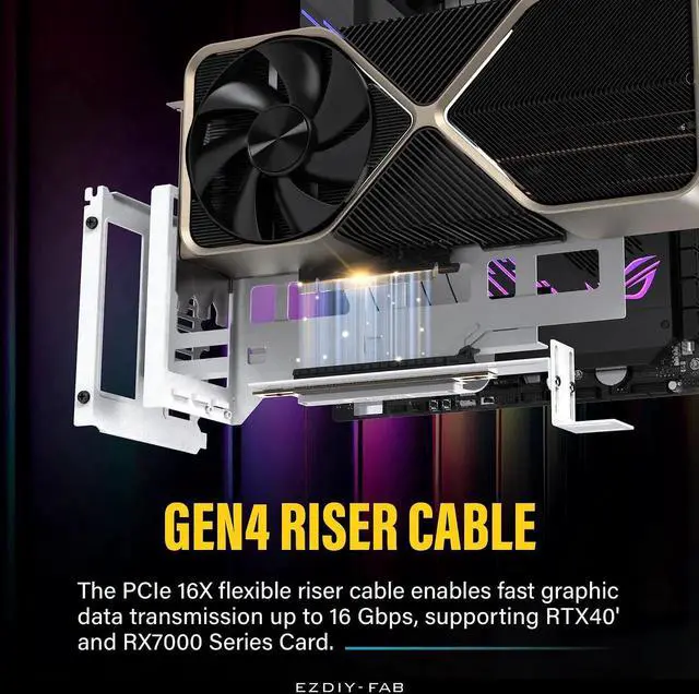 Vertical PCIe 4.0 GPU Mount Graphic Card Bracket, Video Card VGA Support Kit with PCIe 4.0 X16 Gen4 White Riser Cable 90 Degree Right Angle- White