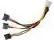 [Product Interface]: One end is a large 4pin female connector, and the other three ends are SATA female connectors.
