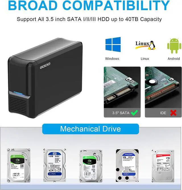 Broad CompatibilityCompatible with all 3.5" SATA I II III HDDs and SSDs